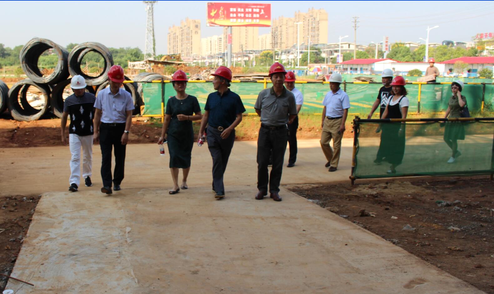 9月13日,蔡甸區(qū)人大張主任,蔡甸區(qū)教育局李局長(zhǎng)、大集街楊主任,大集街教辦陳主任等一行蒞臨集團(tuán)在建的“南湖(新光)小學(xué)”項(xiàng)目視察指導(dǎo)工作,集團(tuán)董事長(zhǎng)徐濤、副總經(jīng)理徐家富陪同視察并對(duì)項(xiàng)目在建情況做詳細(xì)匯報(bào)!