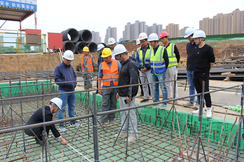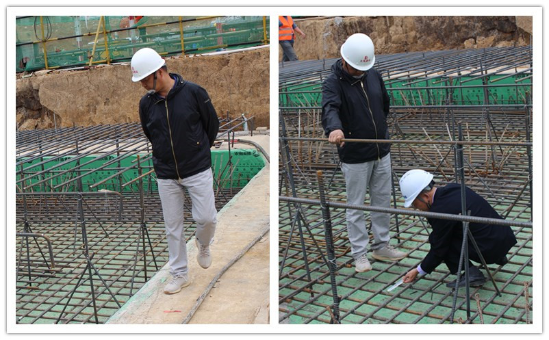 在項目部負責人的陪同下,徐副總一行深入項目施工現場,分別對9#樓地下室止水鋼板施工、16#樓地下室底板鋼筋綁扎等進行了嚴格的檢查,并對檢查中發(fā)現的問題提出了整改意見,要求項目部嚴格按照標準要求整改到位。