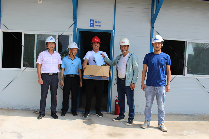 小集還建社區(qū)五期地下室、大集消防站、世茂龍灣、泰禾君悅花園……每到一處,集團(tuán)工程部都會將購買好的毛巾、風(fēng)油精、十滴水、人丹、藿香正氣水等防暑降溫物資送到項目人員手中,并要求各項目部一定要把施工人員的身體健康放在首位,要在全力以赴抓質(zhì)量、搶進(jìn)度、創(chuàng)佳績的同時,嚴(yán)格按照國家有關(guān)規(guī)定,把防暑降溫工作落實好、做到位,要根據(jù)天氣氣溫的變化,合理安排工作時間,作好安全預(yù)防措施、備足防暑降溫物質(zhì),讓員工們安全度過高溫天氣。