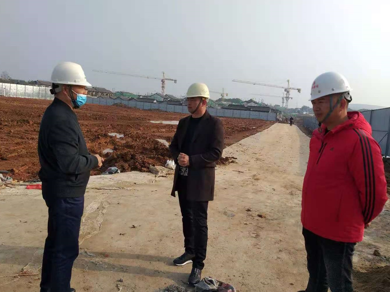 在大集G區(qū)蓮溪花園項(xiàng)目,徐副總一行首先在辦公區(qū)查看了工作環(huán)境,詳細(xì)了解目前項(xiàng)目的施工情況和進(jìn)度,同時(shí)對(duì)項(xiàng)目現(xiàn)場(chǎng)安全防護(hù)、農(nóng)民工宿舍等進(jìn)行仔細(xì)檢查,并對(duì)項(xiàng)目安全、質(zhì)量、進(jìn)度和疫情防控工作給予充分肯定。