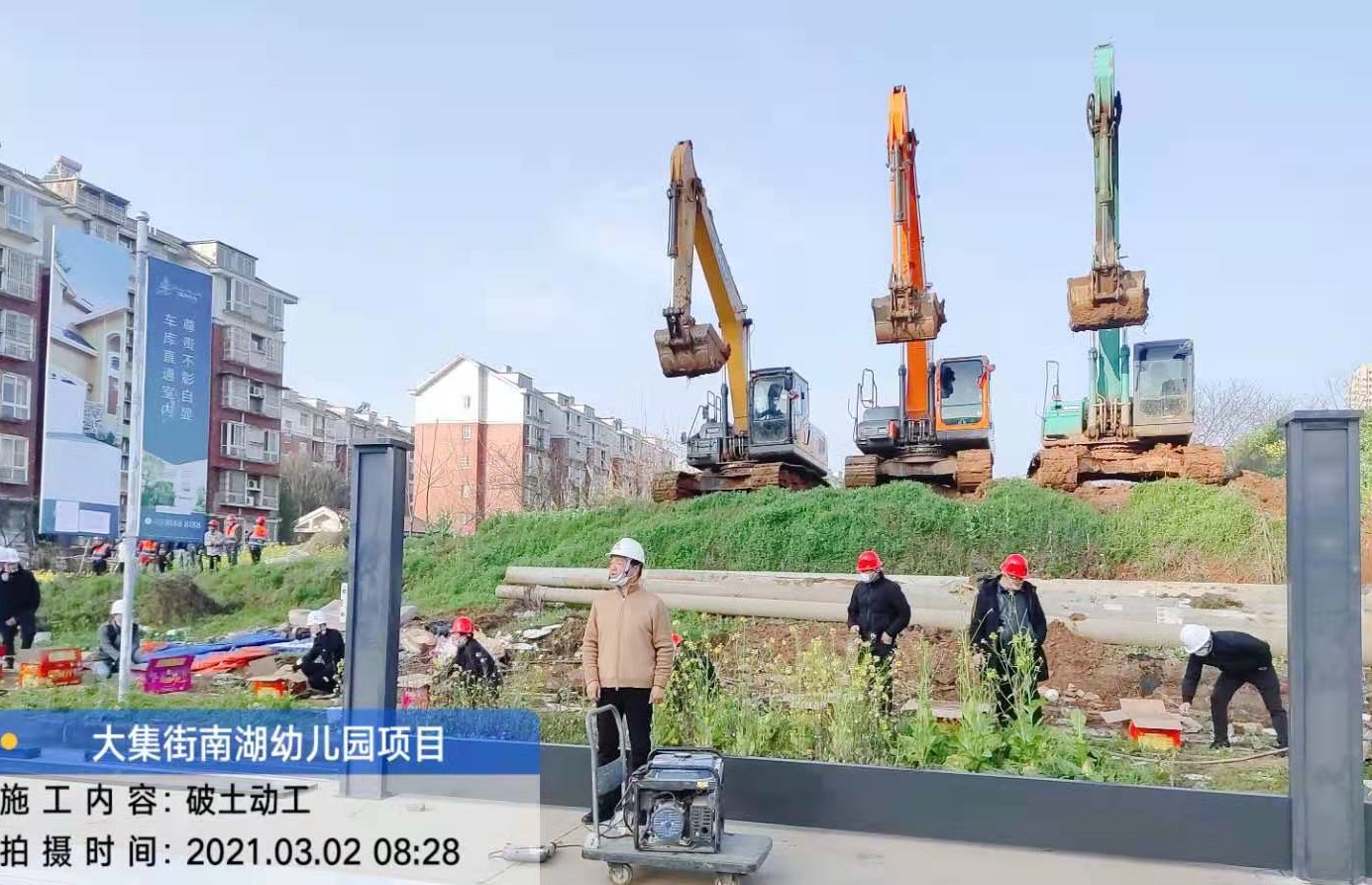 3月2日上午,伴隨著震耳欲聾的鞭炮聲,集團(tuán)副總經(jīng)理徐家富宣布破土動(dòng)工,三輛挖機(jī)同時(shí)開槽破土,由集團(tuán)公司承建的南湖幼兒園項(xiàng)目工程正式開工建設(shè)!