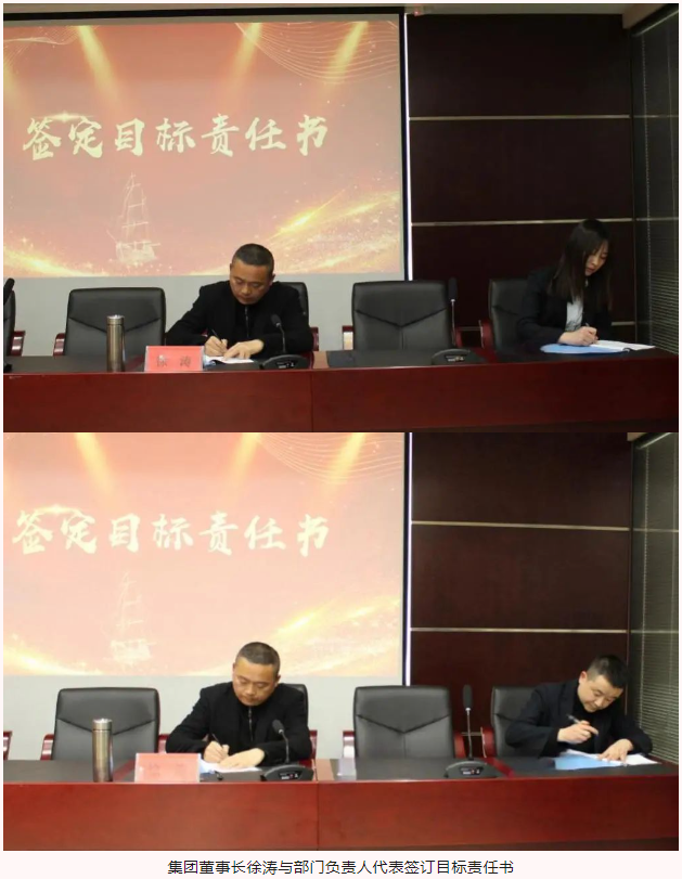 在2024年目標(biāo)責(zé)任書(shū)簽訂儀式上,集團(tuán)董事長(zhǎng)、總經(jīng)理、副總經(jīng)理依次與部門(mén)負(fù)責(zé)人代表、項(xiàng)目代表簽訂目標(biāo)責(zé)任書(shū)。責(zé)任書(shū)不僅僅是一紙文件,它承載著集團(tuán)的期望與信任,代表著責(zé)任與擔(dān)當(dāng),猶如千鈞之重。
